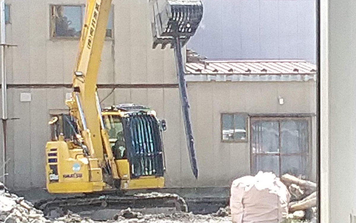 昼前の作業は難儀した杭抜きとコンクリートの剥がしで