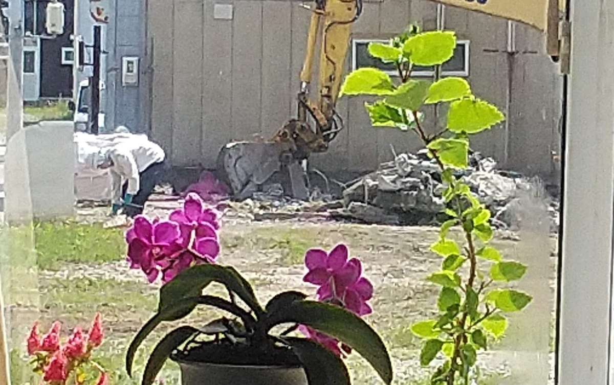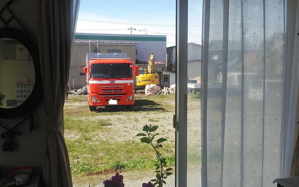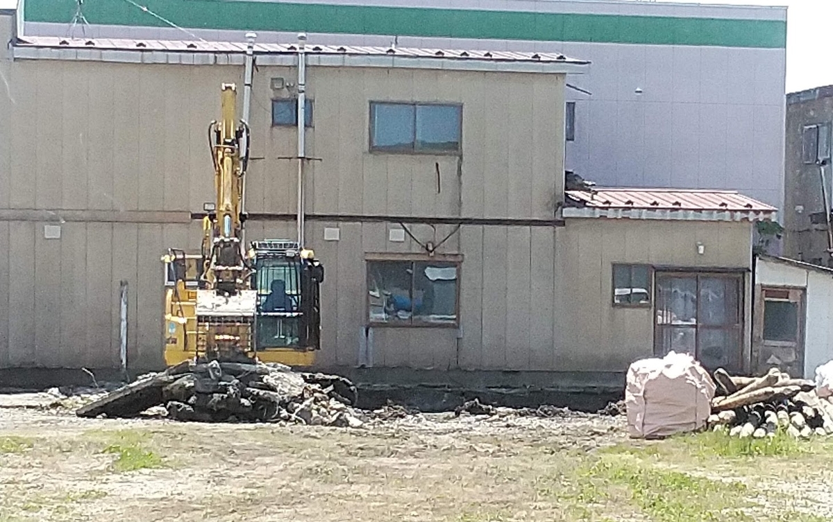 昼前は半分残っていた土台の厚いコンクリートを重機の